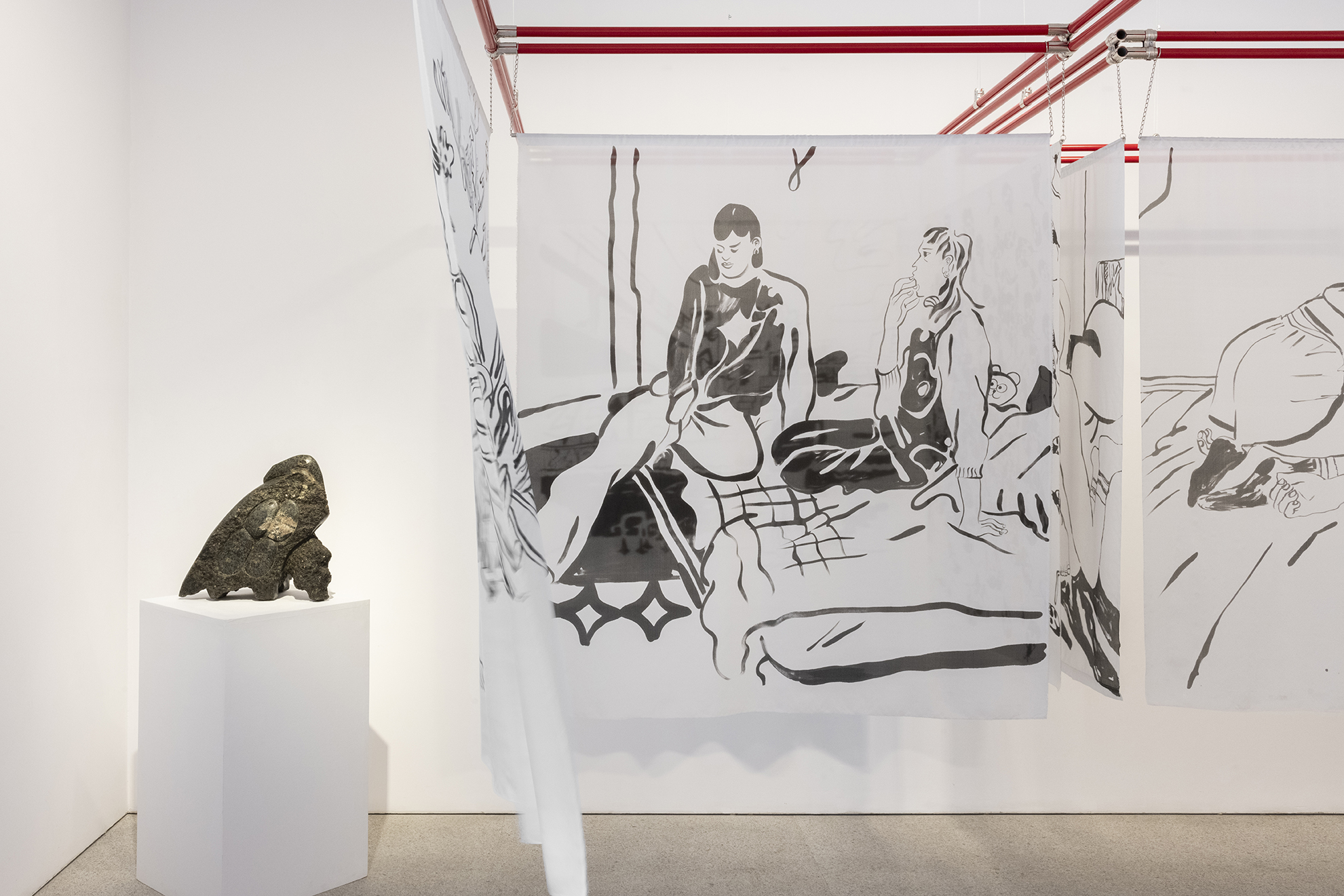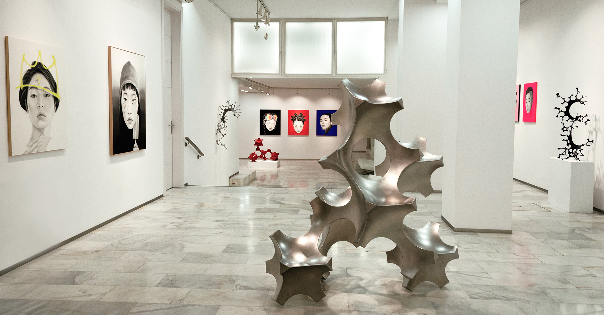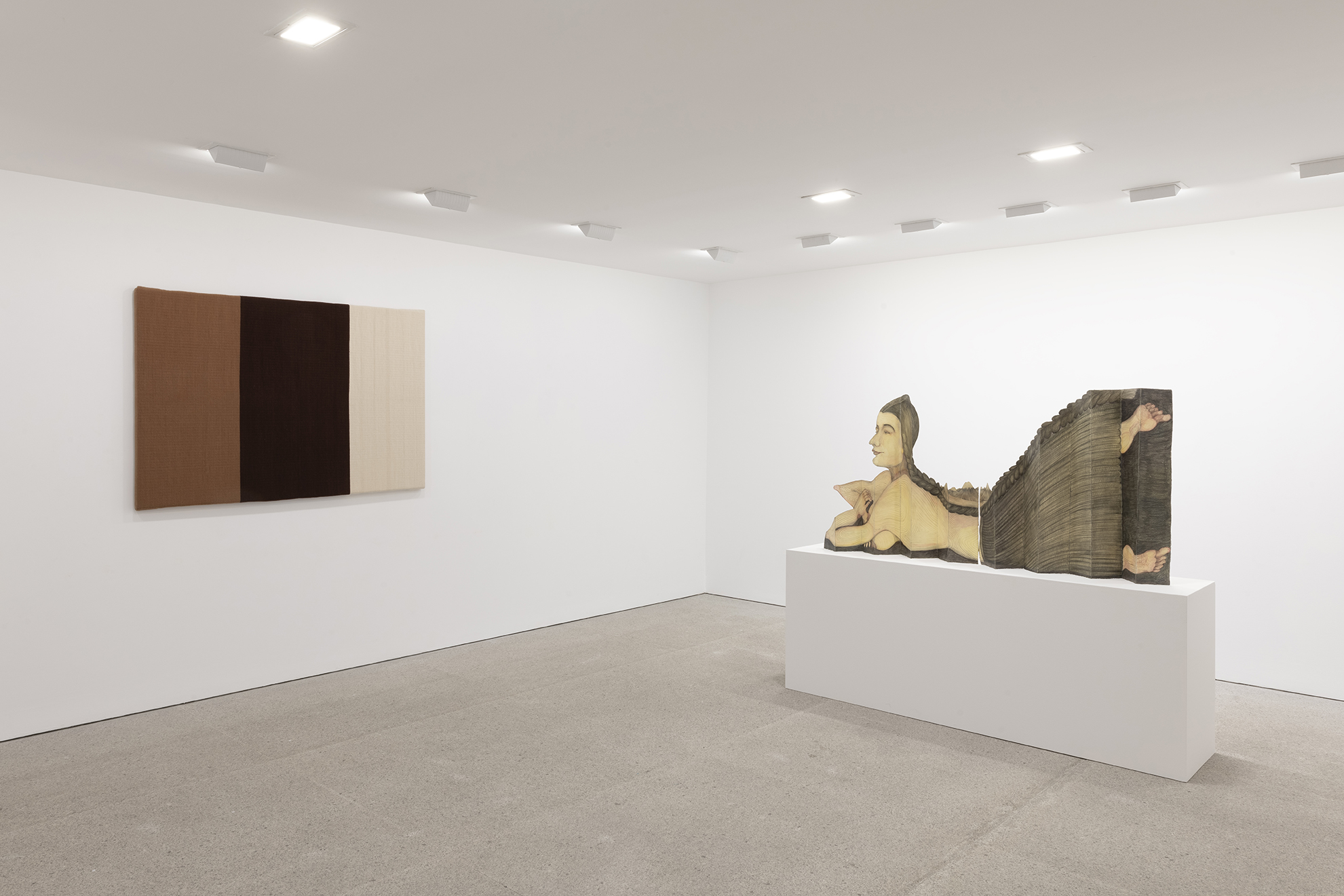 Encuentro entre la artista Marina Vargas y la comisaria de la exposición, Semíramis González, sobre el proceso creativo de las obras que forman parte de la exposición Anonymous was a woman en la galería Fernando Pradilla.