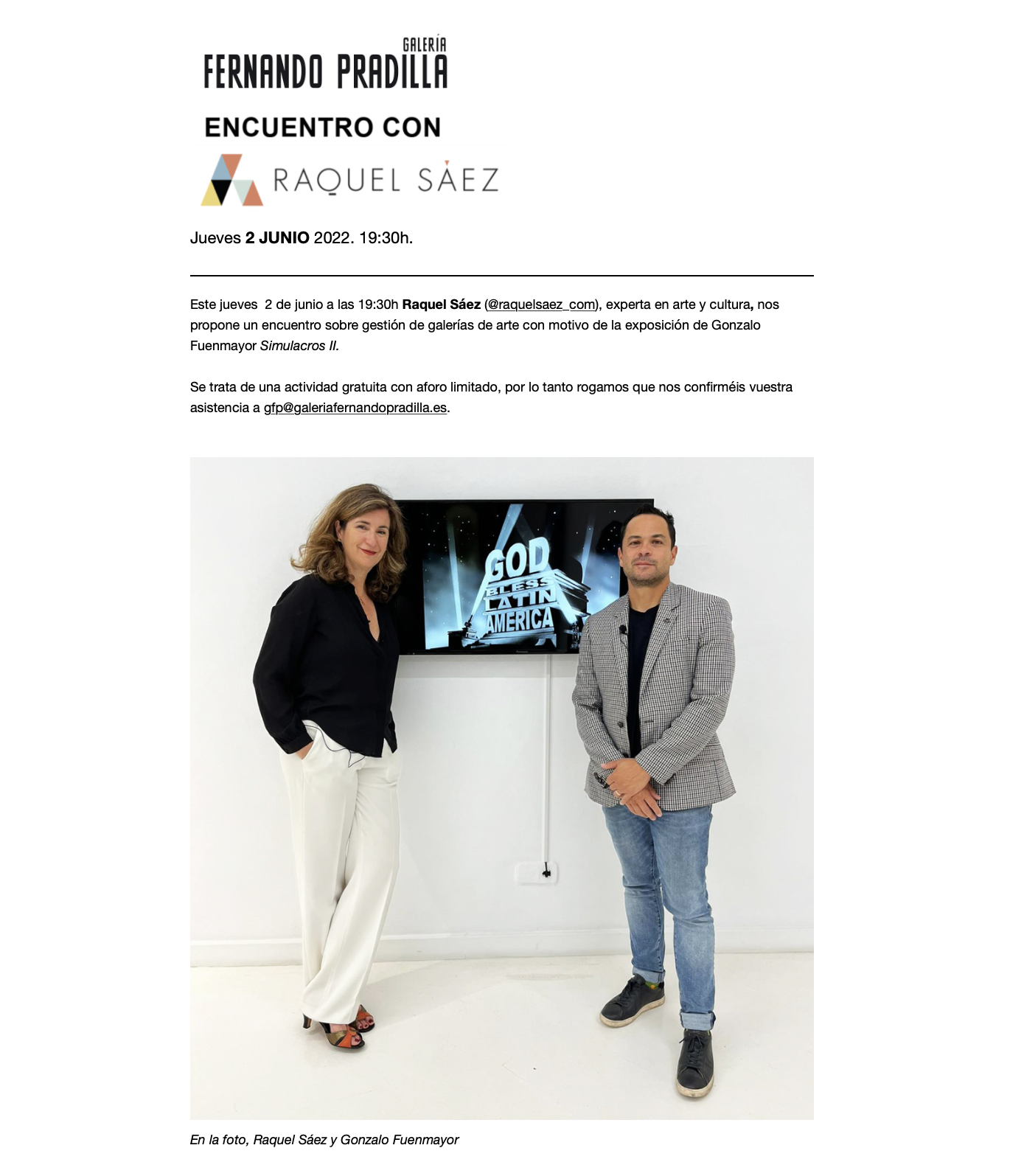 It will be possible to attend in person by confirming attendance at info@adoracalvo.com.